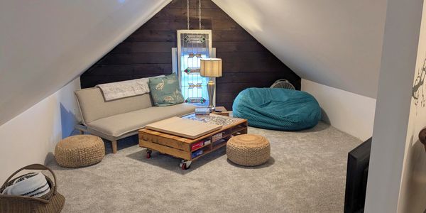 The Crow's Nest suite is a charming upgrade offered for the Crow's Nest room. Accessible through a stairway passage off the Crow's Nest bathroom, it adds extra elbow room and privacy during your stay. It features a second tv and large puzzle/game table. It can be purchased as an add on package when booking your room. Perfect for when staying with friends and family.